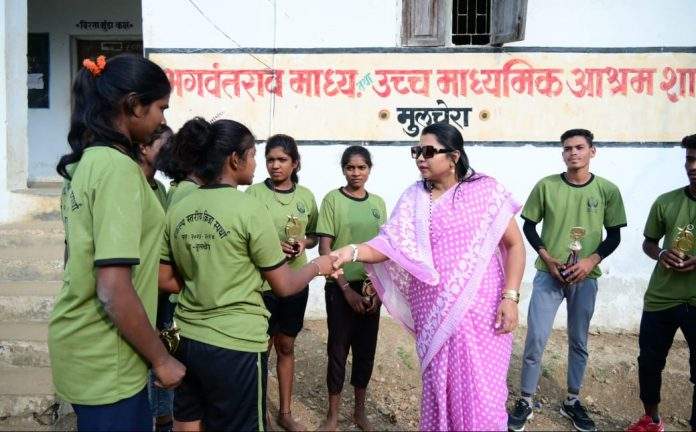 मुलचेरा: नुकतेच एकात्मिक आदिवासी विकास प्रकल्प अहेरी तर्फे घेण्यात आलेल्या क्रीडा स्पर्धेत मुलचेरा येथील विद्यार्थ्यांनी प्राविण्य मिळविले. त्या विद्यार्थी खेळाडूंची भेट घेऊन माजी जि प अध्यक्ष भाग्यश्री ताई आत्राम यांनी त्यांना पुढील विभागीय क्रीडा स्पर्धेसाठी शुभेच्छा दिले.