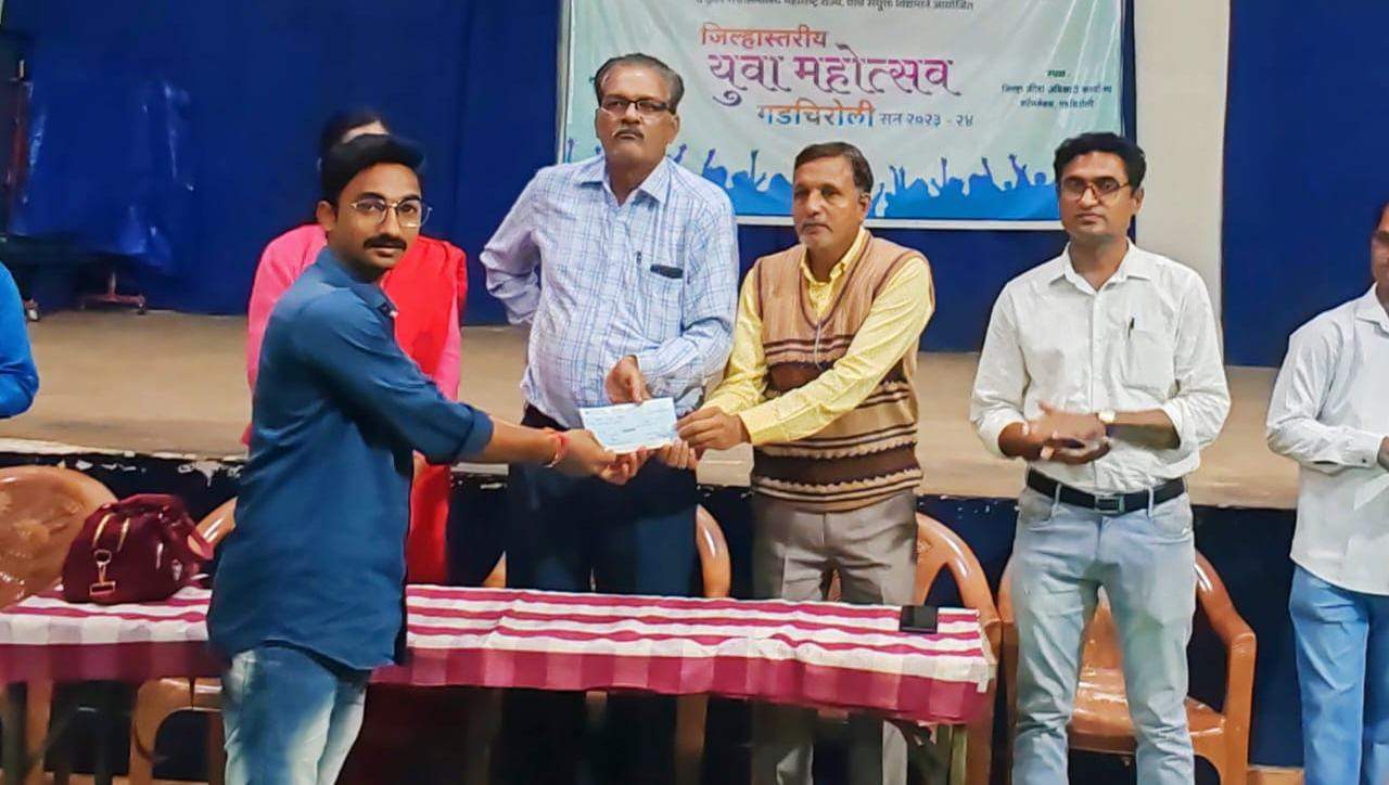 गडचिरोली :: महाराष्ट्र शासनाच्या क्रीडा व युवक सेवा संचालनालय व कृषी आयुक्तालय पुणे यांच्या संयुक्त विद्यमाने जिल्हा क्रीडा अधिकारी गडचिरोली च्या वतीने जिल्हास्तरीय युवा महोत्सवाचे आयोजन करण्यात आले. या दरम्यान घेण्यात आलेल्या (कथालेखन) स्पर्धेत अनुप वसंत कोहळे मु. राजनगट्टा, ता. चामोर्शी येथील युवक द्वितीय क्रमांकाचा मानकरी ठरला आहे.