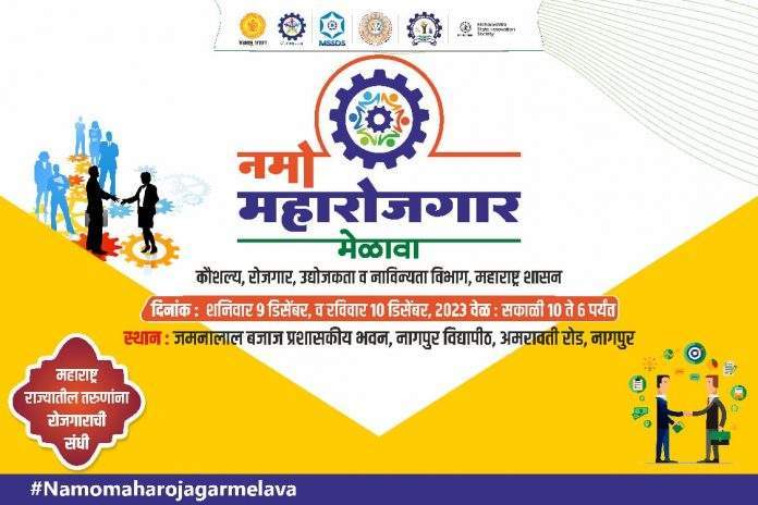 नागपूर, 6 डिसेंबर 2023 : नोकरीच्या शोधात असलेल्या तरुणांसाठी एक सुवर्णसंधी आहे. कारण आता नमो महारोजगार मेळाव्याच्या माध्यमातून 10 हजारहून अधिक युवकांना नियुक्ती पत्रे दिली जाणार आहेत. यासाठी उपमुख्यमंत्री देवेंद्र फडणवीस यांच्या संकल्पनेतून व्यवसाय शिक्षण व प्रशिक्षण संचालनालय, महाराष्ट्र शासन व महाराष्ट्र शासन कौशल्य, रोजगार, उद्योजकता आणि नाविन्यता विभाग यांच्या मार्फत येत्या दिनांक 9 आणि 10 डिसेंबरला जमनालाल बजाज भवन, राष्ट्रसंत तुकडोजी महाराज विद्यापीठ परिसर, अमरावती रोड, नागपूर येथे भव्य असा नमो महारोजगार मेळावा आयोजित आहे. या मेळाव्यात सहभागी होण्यासाठी नागपूरसह विदर्भातील ३८ हजार ८०० तरुणांनी ऑनलाइन नोंदणी केली आहे. नागपूरसह विदर्भातून मोठा प्रतिसाद मिळत आहे. ऑनस्पॉट नोंदणीसाठी ५० हून अधिक स्टॉल राहणार आहेत.