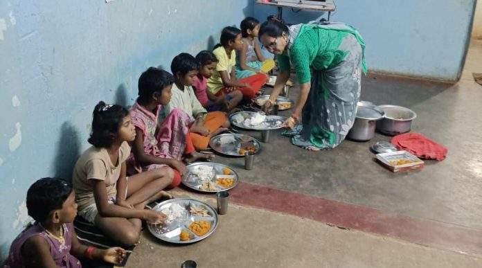 निवासी दिव्यांग विद्यालय लांझेडा, गडचिरोली येथे महर्षी अध्यात्म विश्वविद्यालयतर्फे अन्नदान