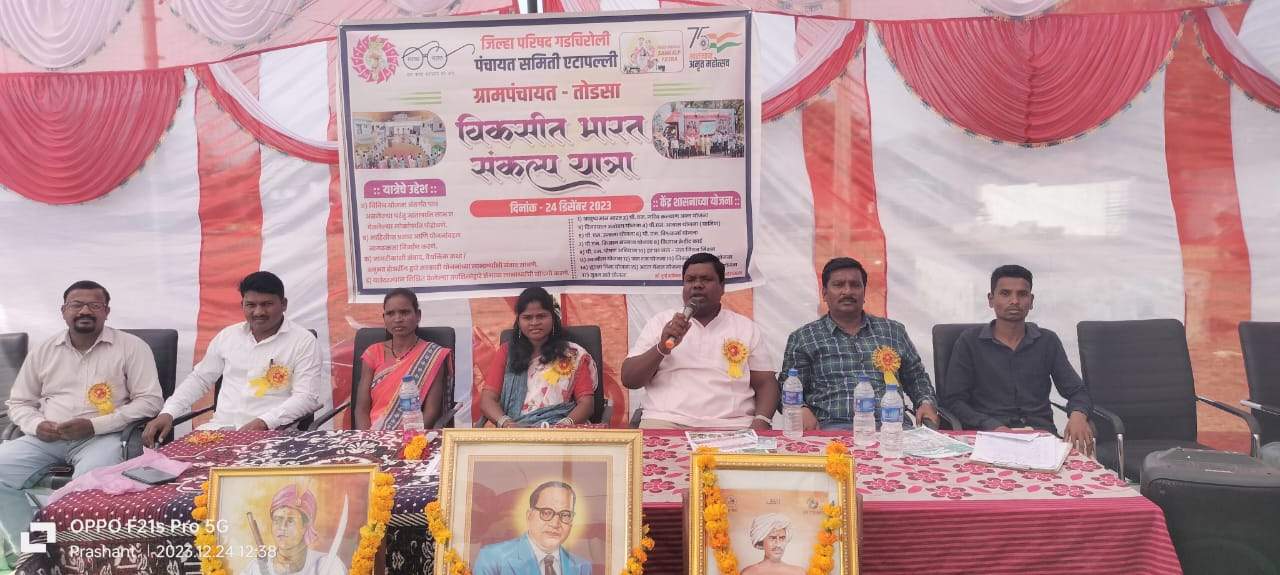 जिल्हा परिषद गडचिरोली पंचायत समिती एटापल्ली ग्रामपंचायत तोडसा येथे भारत सरकारच्या 9 वर्षे पुर्ण झाले असुन सदर योजनांची माहिती लोकांपर्यंत पोहोचविण्यासाठी हि संकल्पना राबविण्यात आले आहे तरी या कार्यक्रमाला अध्यक्ष म्हणुन कु वनिता कोरामी सरपंच, उद्धाटक श्री प्रशांत आत्राम उपसरपंच, श्री मुळे साहेब मंडळ निरिक्षक, श्री अनल वरिष्ठ लिपिक, श्री रामचंद्र कोडापे ग्रामसेवक, श्री मल्लेवार संघटक मुक्तीपत,तसेच इतर मान्यवर तहसील कार्यालय एटापल्ली, पंचायत समिती एटापल्ली,मुक्तिपत विभाग,उमेद बचत गट विभाग, प्राथमिक आरोग्य केंद्र, शासकीय आश्रमशाळा, जिल्हा परिषद प्राथमिक शाळा, वनविभाग, पशुसंवर्धन विभाग, तालुका कृषी विभाग,व ग्रामपंचायत तोडसा यांनी सहकार्य केले,*
