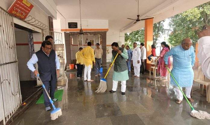 हनुमान मंदिरात स्वच्छता अभियान, खासदारांनी घेतला हाती झाडू-पोचा