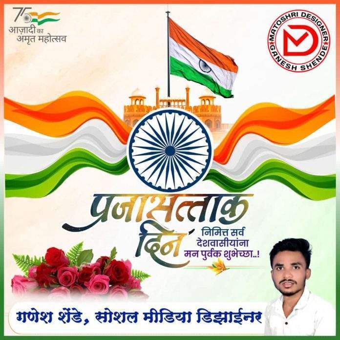 Breaking News प्रजासत्ताक दिन निमित्त सर्व देशवासीयांना हार्दिक शुभेच्छा By vrutt wani - January 26, 2024 71 Share WhatsAppFacebookTelegram प्रजासत्ताक दिन निमित्त सर्व देशवासीयांना हार्दिक शुभेच्छा शुभेच्छूक गणेश शेंडे सोशल मीडिया डिझायनर