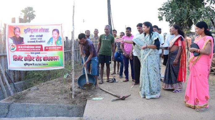 एटापल्ली:तालुक्यातील कांदोळी येथे माजी जि प अध्यक्ष तथा सिनेट सदस्य भाग्यश्री ताई आत्राम यांच्याहस्ते विकास कामांचे भूमिपूजन करण्यात आले.