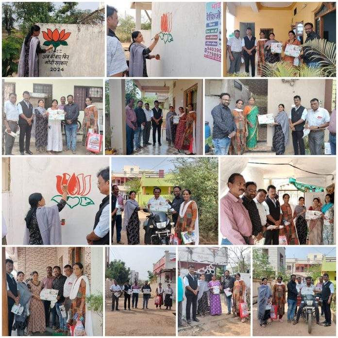 *दिवार लेखन अभियांतर्गत सौ.योगीताताई पिपरे यांनी भाजप पक्षाचा चिन्ह काढून गाव चलो अभियानाची सुरवात केली.*