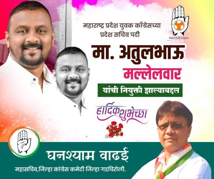 महाराष्ट्र प्रदेश युवक काँग्रेसच्या प्रदेश सचिव पदी अतुल मल्लेलवार यांची नियुक्ती