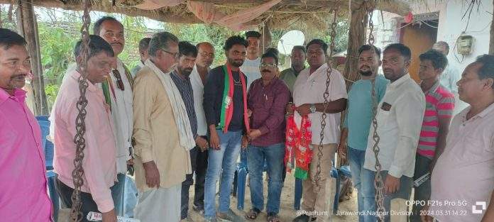 *भारतीय जनता पार्टी एटापल्ली च्या वतीने मा.श्रीमंत राजे अम्र्बिशराव महाराज आत्राम माजी राज्यमंत्री तथा माजी पालकमंत्री गडचिरोली जिल्हा यांच्या मार्गदर्शनाखाली बुथ सभा व प्रचार सभा सम्पन्न भारताचे लोकप्रिय लाडके प्रधानमंत्री मा. नरेंद्र जी मोदी साहेब यांना तिसऱ्यादा प्रधानमंत्री बनविणे आहे,व मा.अशोक भाऊ नेते लाडके लोकप्रिय खासदार तथा लोकसभा उमेदवार गडचिरोली चिमुर क्षेत्र यांच्या निवडणुक प्रचारार्थ मोदी की गॅरंटी जनसंवाद कार्यक्रम, गाव चलो अभियान राबविण्यात आले असुन एटापल्ली तालुक्यातील ग्रामीण भागात पंचायत समिती क्षेत्रातील निवडणुक प्रचार नियोजन बद्ध कार्यक्रम पंचायत समिती क्षेत्र, 1) जारावंडी,(जारावंडी) 2) कसनसुर (घोटसुर) या क्षेत्रातील निवडणुक बैठक सभा घेतांना. मा रवि भाऊ ओल्लालवार जिल्हा महामंत्री भारतीय जनता पार्टी गडचिरोली, मा. प्रशांत भाऊ आत्राम तालुकाध्यक्ष एटापल्ली, मा मोहन भाऊ नामेवार तालुका महामंत्री,सम्मा जेट्टी तालुका अध्यक्ष आदिवासी आघाडी, योगेश कुमरे तालुका सचिव,मा संजय पोहनेकर सर,मा दामोदर नरोटे जिल्हा महामंत्री ,सुभम मुनरत्तिवार सदस्य ,मा सुनिल मडावी माजी सरपंच ,मा देवीदास मोहुर्ले , राजु गुरनुले , मा. महागुराम उसेंडी ,मा .देवु गावडे,व पंचायत समिती जारावंडी – कसनसुर या क्षेत्रातील बुथ प्रमुख बुथ पालक व पदाधिकारी तसेच भारतीय जनता पार्टीचे कार्यकर्ते मोठ्या संख्येने उपस्थित होते,*