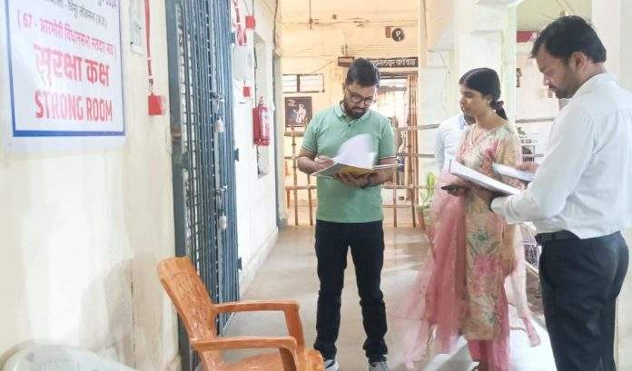 श्री राहुल कुमार आज गडचिरोली येथे रूजू झाले. जिल्हाधिकारी संजय दैने यांनी त्यांचे पुष्पगुच्छ देवून स्वागत केले. श्री राहुल कुमार यांनी निवडणुक निरीक्षक म्हणुन रुजू होताच आरमोरी विधानसभा मतदारसंघात भेट निवडणूक व्यवस्थेची पाहणी केली. त्यांनी देसाईगंज येथील तहसिल कार्यालयातील सुरक्षा कक्षाची पाहणी करुन स्ट्रॉंग रूमच्या सभोवताची सिसीटीव्ही कॅमेरे, विद्युत व्यवस्था, पोलीस सुरक्षा, अग्निशामक यंत्र, ईव्हीएम साठवणूक कक्ष इत्यादी व्यवस्थेबाबत आढावा घेतले. याप्रसंगी सहायक निवडणूक अधिकारी श्रीमती मानसी तहसिलदार प्रिती डुडुलकर, प्रशांत गड्डम तसेच इतर अधिकारी उपस्थित होते.