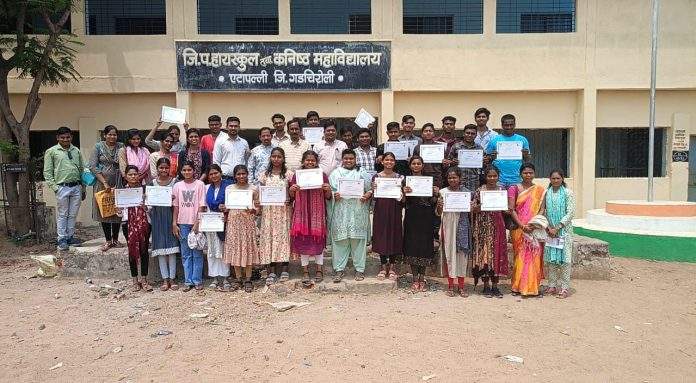 दि. 29/04/2024 ला जि. प. हायस्कूल तथा कनिष्ठ महाविद्यालय एटापल्ली येथे वर्ग 12 वीच्या ब्युटी अॅण्ड वेलनेस आणि हेल्थकेयर या विषयातर्गंत 80 तासाची Internship पूर्ण केलेल्या विद्यार्थ्यांचा गुणगौरव करण्यात आला.