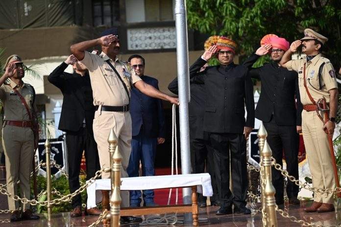 महाराष्ट्र राज्य स्थापनेचा 64 वा वर्धापन दिन आज जिल्हा पोलिस मुख्यालयाच्या मैदानावर जिल्हाधिकारी यांच्या हस्ते ध्वजारोहण करून साजरा करण्यात आला. यावेळी मार्गदर्शन करतांना श्री दैने बोलत होते. जिल्हा परिषदेच्या मुख्य कार्यकारी अधिकारी आयुषी सिंह, जिल्हा पोलिस अधीक्षक श्री निलोत्पल, सहायक जिल्हाधिकारी राहुल मिना, उपवनसंरक्षक मितेश शर्मा याप्रसंगी उपस्थित होते.