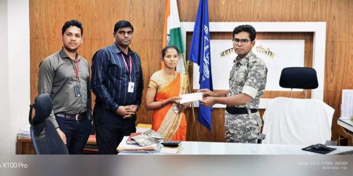 गा. अपर पोलीस अधीक्षक (प्रशासन) सा. यांचे हस्ते कुटुंवियाला १० लाख रुपयाचा धनादेश स्वाधीन