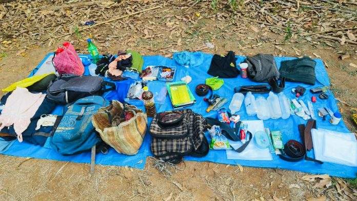 माओवाद्यांच्या कॅम्पच्या ठिकाणी जाऊन शोध अभियान राबविले असता, सदर ठिकाणावरुन सोलार प्लेट 01 नग, माओवादी डांगरी (पँट) 02 नग, माओवादी पिट्टु 06 नग, चप्पल जोड 03 नग, ताडपत्री 03 नग, प्लॅस्टीक टेंट 02 नग, बेल्ट 07 नग, टेस्टर 02 नग, लाकडी मुठ असलेला पेचकस 01 नग, शॉल 02 नग, लंुंगी 01 नग, शर्ट (फुल) 04 नग, टी शर्ट 06 नग, लोअर पँट 02 नग, जॅकेट (हिरवा) 01 नग, दुपट्टे (हिरवे व लाल) प्रत्येकी 01 नग, कॅप 02 नग, बेडशिट 01 नग, मग (स्टिल) 04 नग, प्लेट (स्टिल) 06 नग, लायटर 02 नग, गंज (जर्मन) 02 नग, कैची 01 नग, मेडीकल किट, पाणी कॅन 05 नग इत्यादी दैनंदिन वापरातील साहित्य जप्त करण्यात आले आहे. विशेष अभियान पथकाची सर्व पथके आज गडचिरोलीला सुखरूप पोहोचले आहे. छत्तीसगड सीमेवर माओवादविरोधी कारवाया तीव्र करण्यात आल्या आहेत.