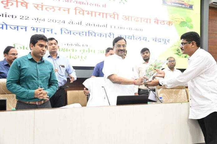 गतवर्षीपासून शासनाने 1 रुपयात प्रधानमंत्री पीक विमा योजना सुरू केली आहे. यापूर्वी केवळ 50 ते 60 हजार शेतकरी या योजनेत सहभागी होत होते. मात्र गतवर्षी जिल्ह्यातील जवळपास 3 लाख शेतकरी या योजनेत सहभागी झाले. ही चांगली बाब असल्याचेही ना. श्री. मुनगंटीवार म्हणाले. यावेळी पालकमंत्री श्री. मुनगंटीवार यांनी खरीप हंगाम 2024-25 चे नियोजन, बियाणे व खतांची उपलब्धता, गुणनियंत्रणाबाबत कार्यवाही, अनधिकृत कापूस बियाणे विक्रीविरुध्द कार्यवाही, प्रधानमंत्री पीक विमा योजना, 2023-24 मध्ये नैसर्गिक आपत्ती अंतर्गत खरीप व रब्बी मध्ये पिकांचे झालेल नुकसान, नुकसानभरपाईचे अनुदान वाटप, पीक कर्ज वाटप, प्रधानमंत्री किसान सन्मान निधी योजना, प्रलंबित कृषी पंप जोडणी यासोबतच आत्मा अंतर्गत राबविण्यात येणारे विविध उपक्रमाचा आढावा घेतला.