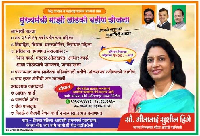 *मुखमंत्री माझी लाडकी बहीण योजना मोफत नोदणी – सौ. गीता हिंगे*