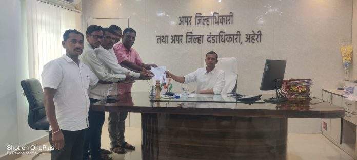 अप्पर जि्हाधिकारी श्री. विजय भाकरे साहेब यांना निवेदन देताना श्री.अजयभाऊ कंकडालवार सहीत माजी पंचायत समिती सभापती भास्कर तलाडे,माजी जि.प.सदस्य अजय नैताम,नगरसेवक प्रशांत गोडसेलवार,माजी उपसरपंच अशोक येलमुले राकेश सडमेकसह आदी उपस्थित होते