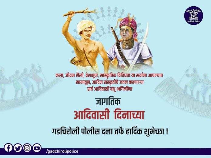 Breaking News जागतिक आदिवासी दिनाच्या गडचिरोली पोलीस दला तर्फे हार्दिक शुभेच्छा By vrutt wani - August 9, 2024 146 Share WhatsAppFacebookTelegram जागतिक आदिवासी दिनाच्या गडचिरोली पोलीस दला तर्फे हार्दिक शुभेच्छा