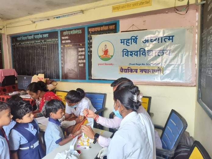 महात्मा गांधी नगर परिषद प्राथमिक शाळा, फुले वार्ड ,गडचिरोली येथे महर्षि अध्यात्म विश्वविद्यालय तर्फे वैद्यकीय तपासणी