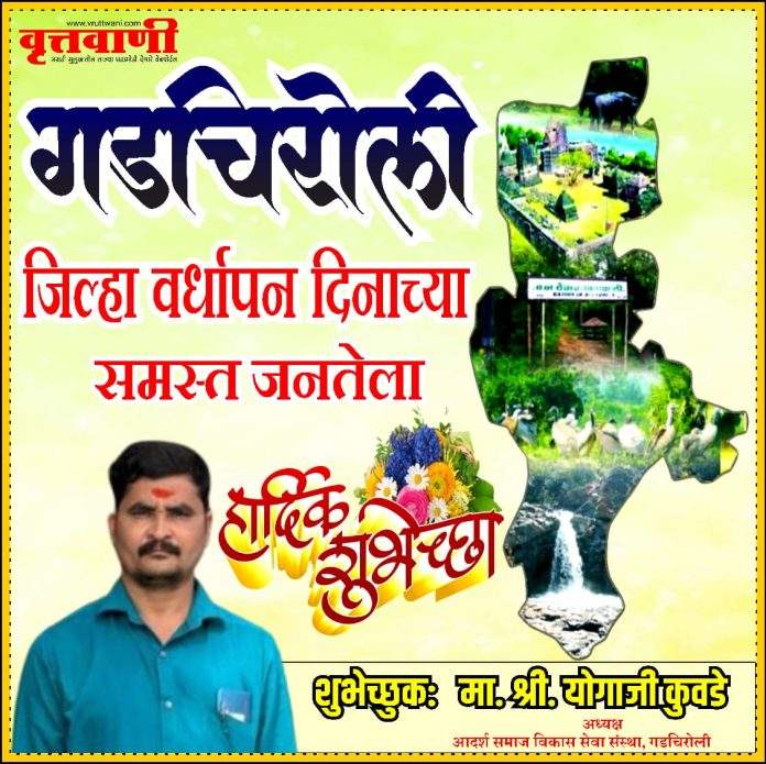 Breaking News गडचिरोली जिल्हा वर्धापन दिनाच्या समस्त जनतेला हार्दिक शुभेच्छा By vrutt wani - August 26, 2024 60 Share WhatsAppFacebookTelegram गडचिरोली जिल्हा वर्धापन दिनाच्या समस्त जनतेला हार्दिक शुभेच्छा शुभेच्छुक मा. श्री योगाजी कुडवे आदर्श समाज विकास सेवा संस्था अध्यक्ष तथा उपसरपंच ग्रामपंचायत आंबेशिवणी