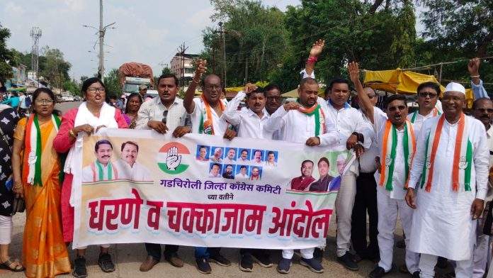 *गडचिरोली जिल्हा काँगेसचे धरणे व चक्का जाम आंदोलन*