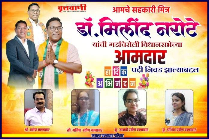 डॉ. मिलिंद नरोटे गडचिरोली विधानसभेच्या आमदार पदी निवड झाल्याबद्दल हार्दिक अभिनंदन