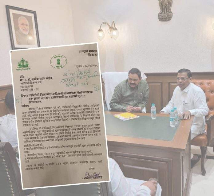 या गंभीर समस्येबाबत *आरमोरी विधानसभा क्षेत्राचे आमदार रामदास मसराम यांनी आदिवासी विकास मंत्री मा. ना. श्री. अशोक उईके साहेब* यांना निवेदन देत तातडीने वसतिगृहे सुरू करण्याची मागणी केली.