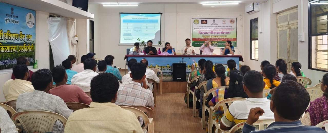 गडचिरोली, दि. १७ जुलै: जिल्ह्यातील शेतकरी उत्पादन कंपन्या(एफ.पी.ओ.), महिला बचत गट आणि शेतकरी गटांना केंद्र व राज्य शासनाच्या विविध कृषी योजना आणि उपक्रमांची माहिती देण्यासाठी आज जिल्हा स्तरीय कार्यशाळेचे आयोजन करण्यात आले. ही कार्यशाळा कृषी तंत्रज्ञान व्यवस्थापन यंत्रणा (आत्मा), कृषी विभाग आणि जिल्हा अमलाबजावणी संस्था (स्मार्ट प्रकल्प) यांच्या संयुक्त विद्यमाने शासकीय फळ रोपवाटिका, सोनापूर येथे पार पडली.