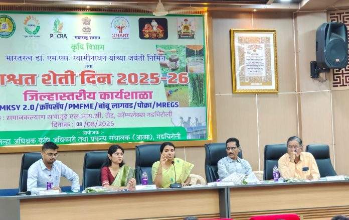 गडचिरोली, दि. ९ ऑगस्ट – पद्मश्री डॉ. विठ्ठलराव विखे पाटील यांच्या जयंतीनिमित्त काल ८ ऑगस्ट रोजी जिल्हा अधीक्षक कृषी अधिकारी कार्यालयाच्या वतीने ‘शेती दिन’ साजरा करण्यात आला. सामाजिक न्याय विभागाच्या सभागृहात आयोजित या कार्यशाळेत कृषी क्षेत्रातील विविध महत्त्वाच्या विषयांवर तज्ज्ञांनी मार्गदर्शन केले.