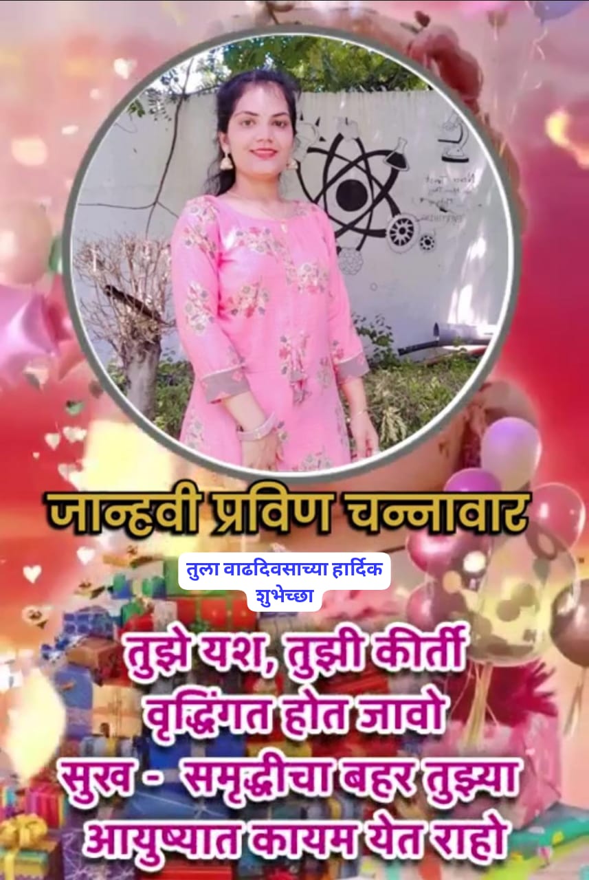 जान्हवी प्रविण चन्नावार तुला वृत्तवाणी न्युज पोर्टल टिम कडून वाढदिवसाच्या हार्दिक शुभेच्छा