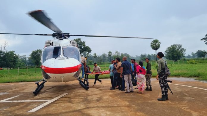 *गडचिरोली पोलिसांनी वैद्यकीय उपचारांकरिता अंगणवाडी सेविकेचे भामरागड येथून हेलिकॉप्टरच्या मदतीने केले वैद्यकीय स्थलांतर*