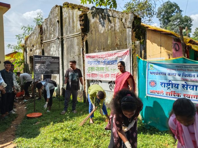 एटापल्ली (प्रतिनिधी) : “स्वच्छता ही सेवा” अभियानांतर्गत भगवंतराव कला व विज्ञान महाविद्यालय राष्ट्रीय सेवा योजना विभाग, समर्पण सामाजिक बहुउद्देशीय संस्था व श्री सार्वजनिक युवा गणेश मंडळ एटापल्ली यांच्या संयुक्त विद्यमाने दिनांक 01 ऑक्टोबर 2025 रोजी को-ऑपरेटिव्ह बँक परिसरात “एक दिवस – एक तास – एकसाथ” स्वच्छता मोहीम राबविण्यात आली.