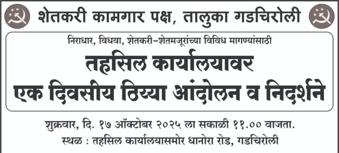 डाव्या मित्रपक्षांचे १७ ऑक्टोबर रोजी जिल्हाभरातील तहसील कार्यालयासमोर एक दिवसीय ठिय्या आंदोलन