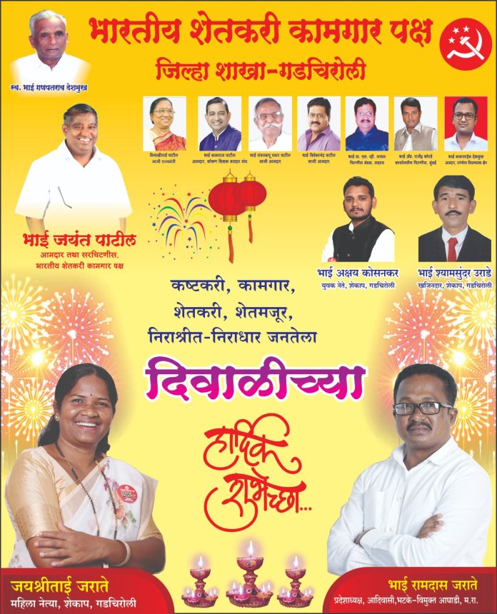 भारतीय शेतकरी कामगार पक्ष जिल्हा शाखा गडचिरोली कडून दिवाळीच्या हार्दिक शुभेच्छा