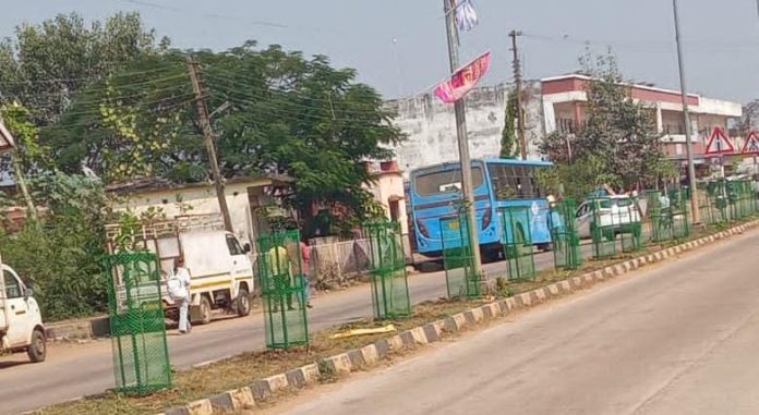 शहरातून जाणाऱ्या रस्त्यावर आठवडाभरापूर्वी वृक्ष लागवड केली होती मात्र कठविण्या झाडे बेवारस जनावरांचे खाद्य होऊन मूळ उद्देशाला हरताळ फासल्याचे चित्र दिसताच प्रसार माध्यमांनी बातमी प्रकाशित करून संबधित विभागाचे लक्ष वेधले.त्याची दखल घेत नवीन झाडे व झाडांना कठडे लावण्यात आल्याने दुभाजकांचा लूक बदलून गेल्याचे दिसत आहे.