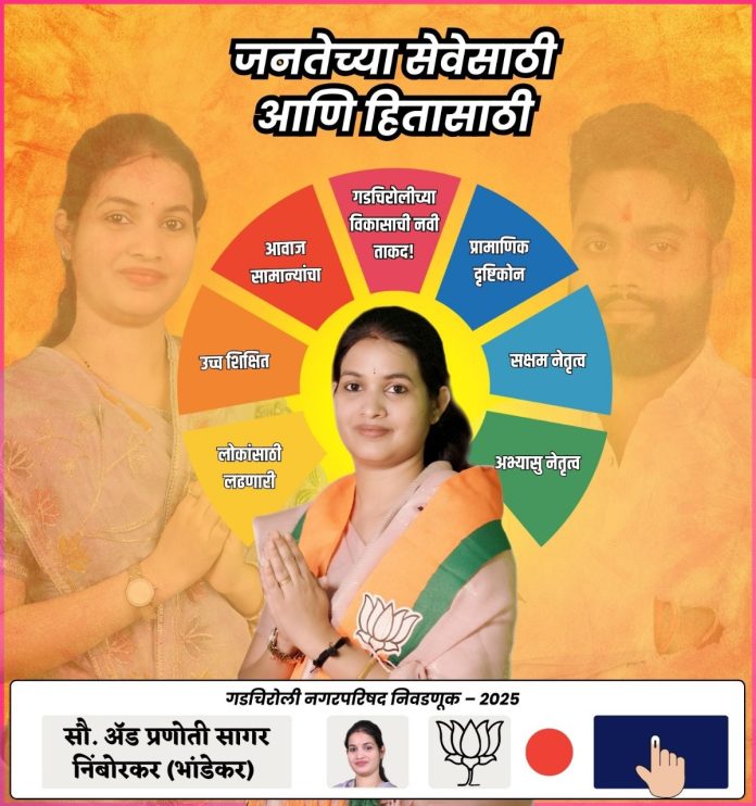 गडचिरोली शहराचा मूलभूत विकास आणि नागरिकांच्या दैनंदिन गरजांना प्रतिसाद देण्यासाठी व्यापक दृष्टीकोन आवश्यक असल्याचे सांगत, भारतीय जनता पक्षाकडून नगराध्यक्ष पदाच्या उमेदवारीवर उभ्या असलेल्या प्रणोती सागर निंबोरकर (भांडेकर) यांनी आपला सर्वसमावेशक विकास आराखडा जाहीर केला आहे.