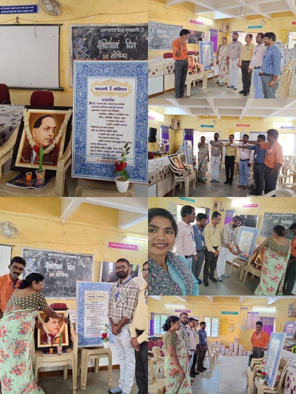 आज दिनांक 26 नोव्हेंबर 2025 रोजी ISO मानांकित BRC , एटापल्ली येथे *संविधान दिनानिमित्त* *संविधान दिन* BRC सभागृहात आयोजित करण्यात आला.भारतिय घटनेने शिल्पकार *डॉ.बाबासाहेब आंबेडकर* यांच्या प्रतिमेचे दिप प्रज्वलीत करुन माल्यार्पन करण्यात आले.अनुषंगाने प्रास्ताविकेचे वाचन करण्यात आले.