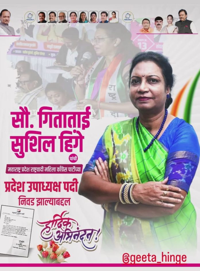 भाजप सोडताच गीता हिंगे थेट राष्ट्रवादी काॅंग्रेस (अजित पवार ) पक्षाच्या प्रदेश उपाध्यक्ष पदावर