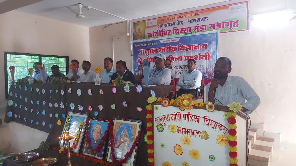 राज्य विज्ञान शैक्षणिक संस्था, औरंगाबाद यांच्या निर्देशानुसार तालुकास्तरीय विज्ञान प्रदर्शन 2025 26 तालुका भामरागड यांची तालुकास्तरीय विज्ञान प्रदर्शनी कस्तुरबा गांधी बालिका विद्यालय भामरागड येथे दिनांक 1 व 2 जानेवारी 2026 ला संपन्न झाली. या कार्यक्रमाचे उद्घाटक श्री किशोर बागडे तहसीलदार भामरागड अध्यक्ष श्री सुरेंद्र गोंगले गटविकास अधिकारी पंचायत समिती भामरागड प्रमुख अतिथी गटशिक्षनाधिकारी निखिल कुमरे श्री सचिन शेवाळे पोलीस निरीक्षक भामरागड श्री मनीष धकाते तालुका आरोग्य अधिकारी भामरागड श्री गिरीश कुलकर्णी प्राचार्य लोक बिरादरी आश्रम शाळा हेमलकसा, मा. श्री देवानंद गायकवाड कृषी अधिकारी पंचायत समिती भामरागड, मा. श्री सुरेश बांबोळे केंद्रप्रमुख भामरागड, सुभाष अन्नदेलवार केंद्रप्रमुख लाहेरी , अनिरुद्ध केंद्रे, केंद्रप्रमुख मन्ने राजाराम राजू मडावी केंद्रप्रमुख गोंगवाडा, मारुती वाचामी मुख्याध्यापक समुह निवासी शाळा, भामरागड, धनिराम तुलावी, गट समन्वयक, गटसाधन केंद्र भामरागड, कालिदास कुनघाडकर साधनव्यक्ती, श्री श्रीमती स्मिता जांभुडे मुख्याध्यापिका कस्तुरबा गांधी बालिका विद्यालय भामरागड, इत्यादी मान्यवर उपस्थित होते. डोळ्यांनी अधिकाधिक ज्ञानग्रहण करून त्याचा आपल्या जीवनात वापर करावा असे मार्गदर्शन उद्घाटक माननीय श्री किशोर बागडे यांनी केले. प्रदर्शनीत सर्व विभागातून जवळपास 50 प्रतिकृती व शिक्षक शैक्षणिक साहित्य मांडण्यात आले होते. कार्यक्रमाचे सूत्रसंचालन चंदु रामटेके, केंद्रप्रमुख ताडगांव यांनी केले. कार्यक्रम यशस्वी करण्यासाठी कस्तुरबा गांधी बालिका विद्यालय व भामरागड तालुक्यांतर्गत सर्व शिक्षक यांनी मुलाचे सहकार्य केले.