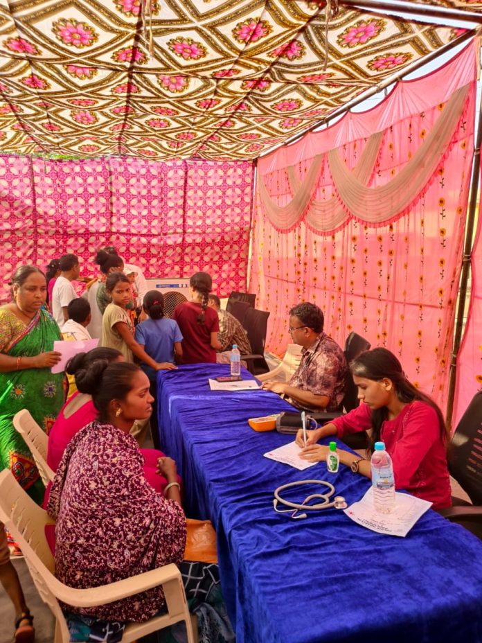 गडचिरोली पोलीस दलाकडून जिल्ह्रातील नागरिकांसाठी वेळोवेळी विविध कल्याणकारी उपक्रम राबविले जात असतात. जिल्ह्रामधील अतिदुर्गम भागातील नागरिकांपर्यंत देखील आरोग्य सेवा पोहचविण्याच्या उद्देशाने गडचिरोली पोलीस दलाकडून विविध आरोग्य मेळावे आयोजित केले जात असतात. याच उपक्रमांचा एक भाग म्हणून गडचिरोली पोलीस दलाच्या वतीने काल दिनांक 12 एप्रिल 2026 रोजी पोलीस रुग्णालय गडचिरोली, जिल्हा सामान्य रुग्णालय गडचिरोली, जिल्हा परिषद गडचिरोली व सीआरपीएफ यांच्या संयुक्त विद्यमाने मौजा लाहेरी येथील आठवडी बाजार परिसरात मोफत आरोग्य तपासणी शिबिराचे आयोजन करण्यात आले होते.
