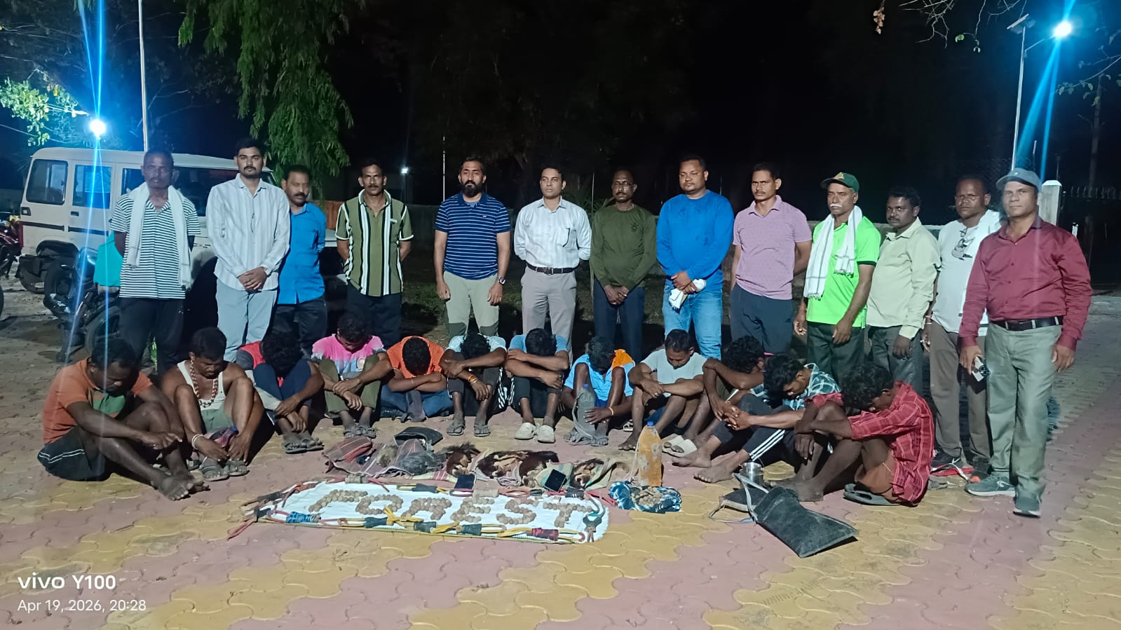 आज दि. 19 एप्रिल 2026 रोजी सायंकाळच्या सुमारास जंगलात काही जण शिकारीसाठी लपून बसल्याची माहिती वनविभागाला प्राप्त झाली. त्यानंतर गस्ती पथकाने तत्काळ परिसरात सापळा रचून पाठलाग केला असता १२ जणांना ताब्यात घेण्यात आले. या कारवाईत शिकाऱ्यांकडून विविध वन्यजीवांचे अवशेष जप्त करण्यात आले.