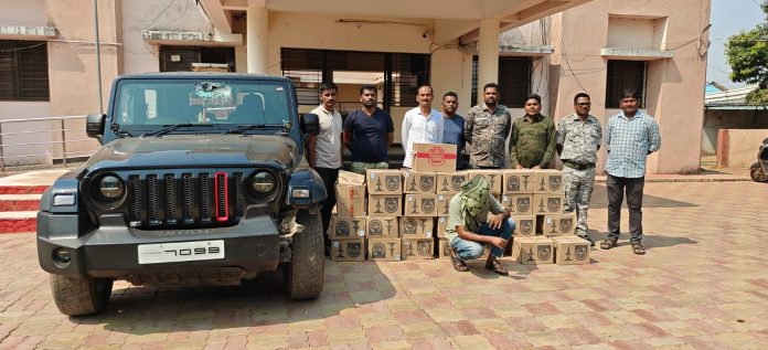 एटापल्ली पोलिसांची धडक कारवाई; थारसह १४.९० लाखांची अवैध दारू जप्त
